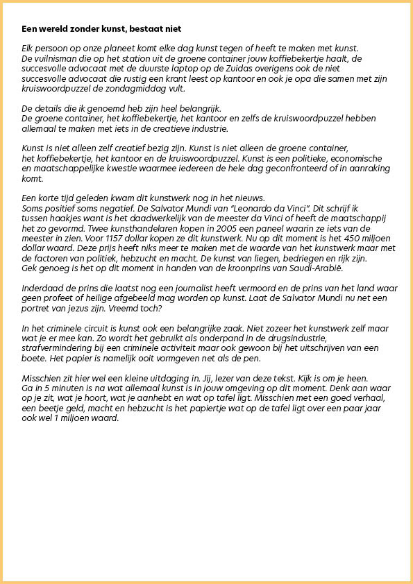 Schrijven - Een wereld zonder kunst bestaat niet